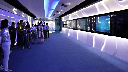 在神州信息工作人员的带领下,与会代表首先参观了公司的展厅,全面了解神州信息金融科技业务情况,并重点听取了神州信息在区块链及数字人民币相关场景研发应用的创新案例方面的介绍。